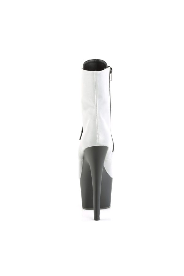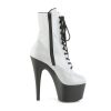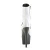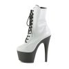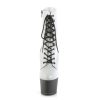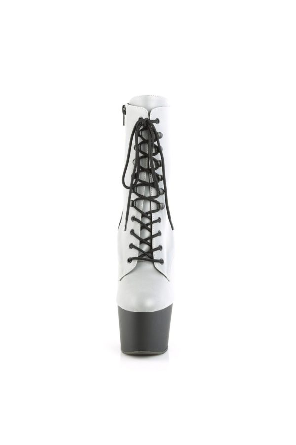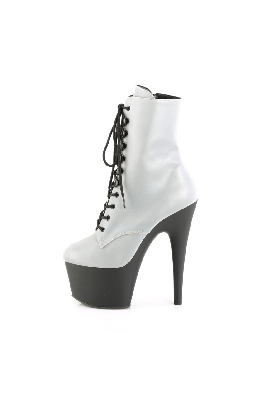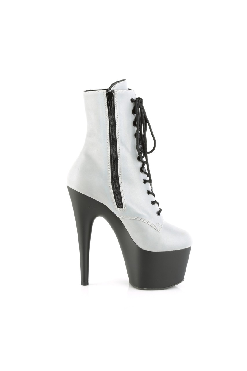 7″” (178mm) Heel, 2 3/4″” (70mm) Platform Lace-Up Front Ankle Boot w/Reflective Effect Upper, Inner Side Zip Closure