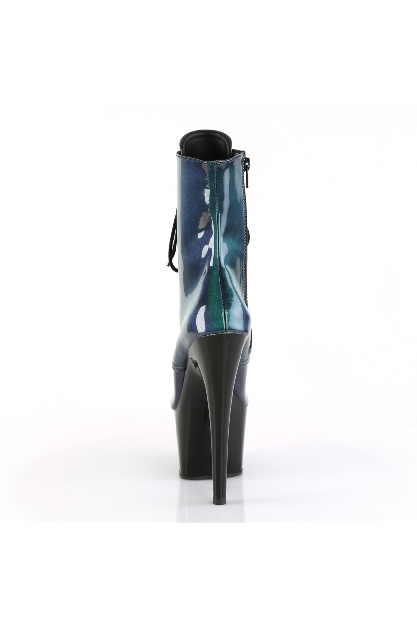 7″” (178mm) Heel, 2 3/4″” (70mm) Platform Lace-Up Front Ankle Boot, Inner Side Zip Closure