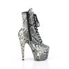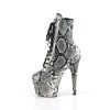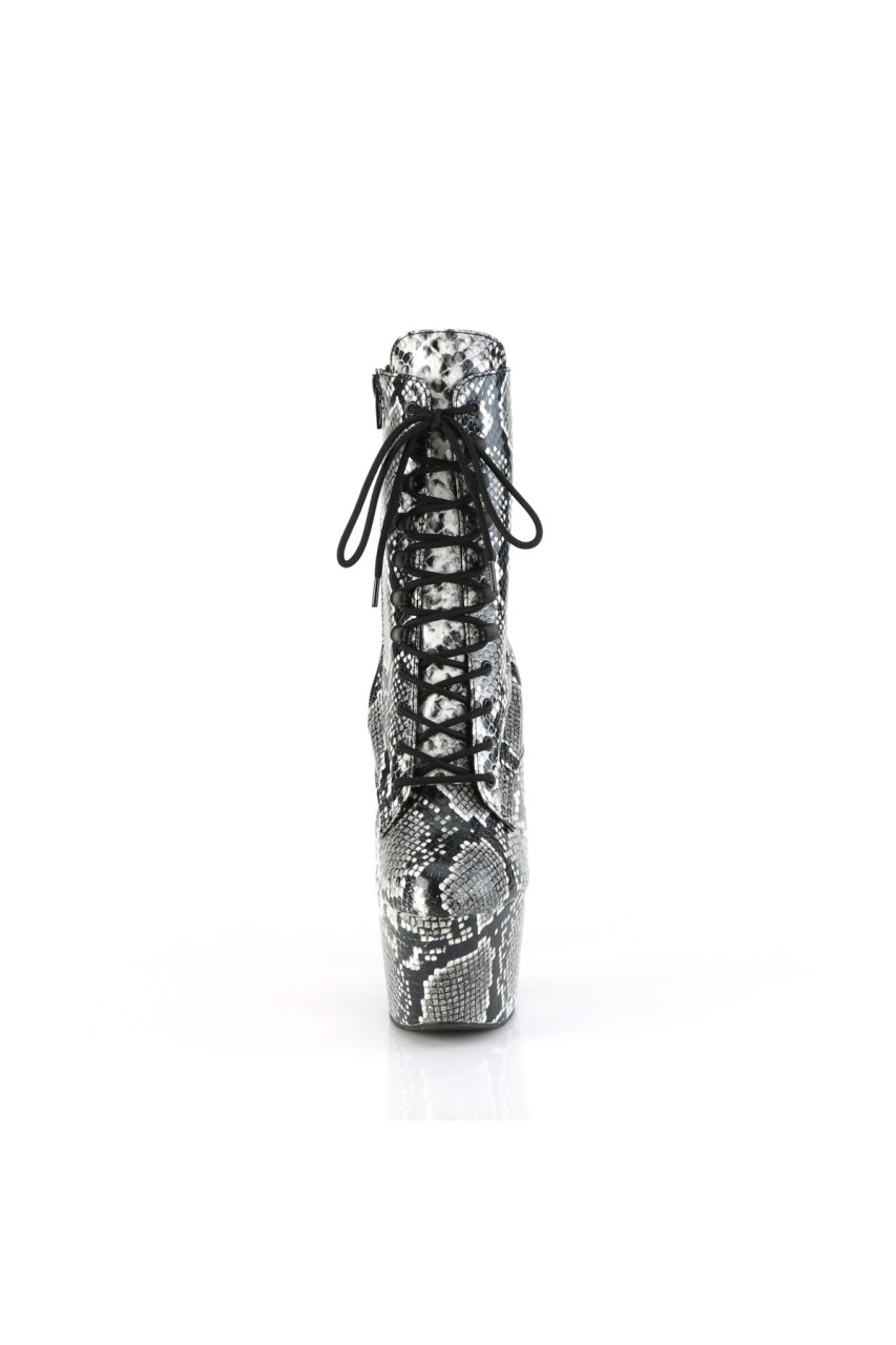 7″” (178mm) Heel, 2 3/4″” (70mm) Wrapped Platform Bottom Lace-Up Front Mid Calf Boot, Inner Side Zip Closure