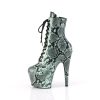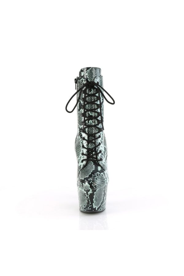 7″” (178mm) Heel, 2 3/4″” (70mm) Wrapped Platform Bottom Lace-Up Front Mid Calf Boot, Inner Side Zip Closure