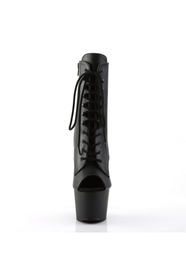 7″” (17.8cm) Stiletto Heel, 2 3/4″” (7cm) Platform Peep Toe Front Lace-Up Ankle Boot, Inner Side Zip Closure