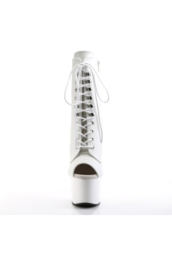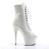 7″” (17.8cm) Stiletto Heel, 2 3/4″” (7cm) Platform Peep Toe Front Lace-Up Ankle Boot, Inner Side Zip Closure