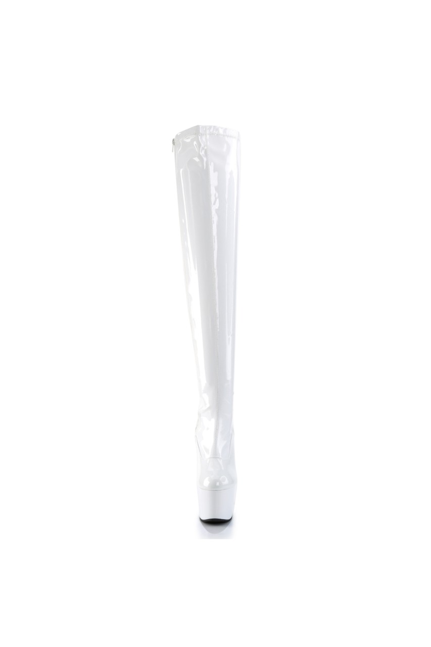 7″” (17.8cm) Stiletto Heel, 2 3/4″” (7cm) Platform Plain Stretch Platform Thigh Boot, Full Inner Side Zip Closure