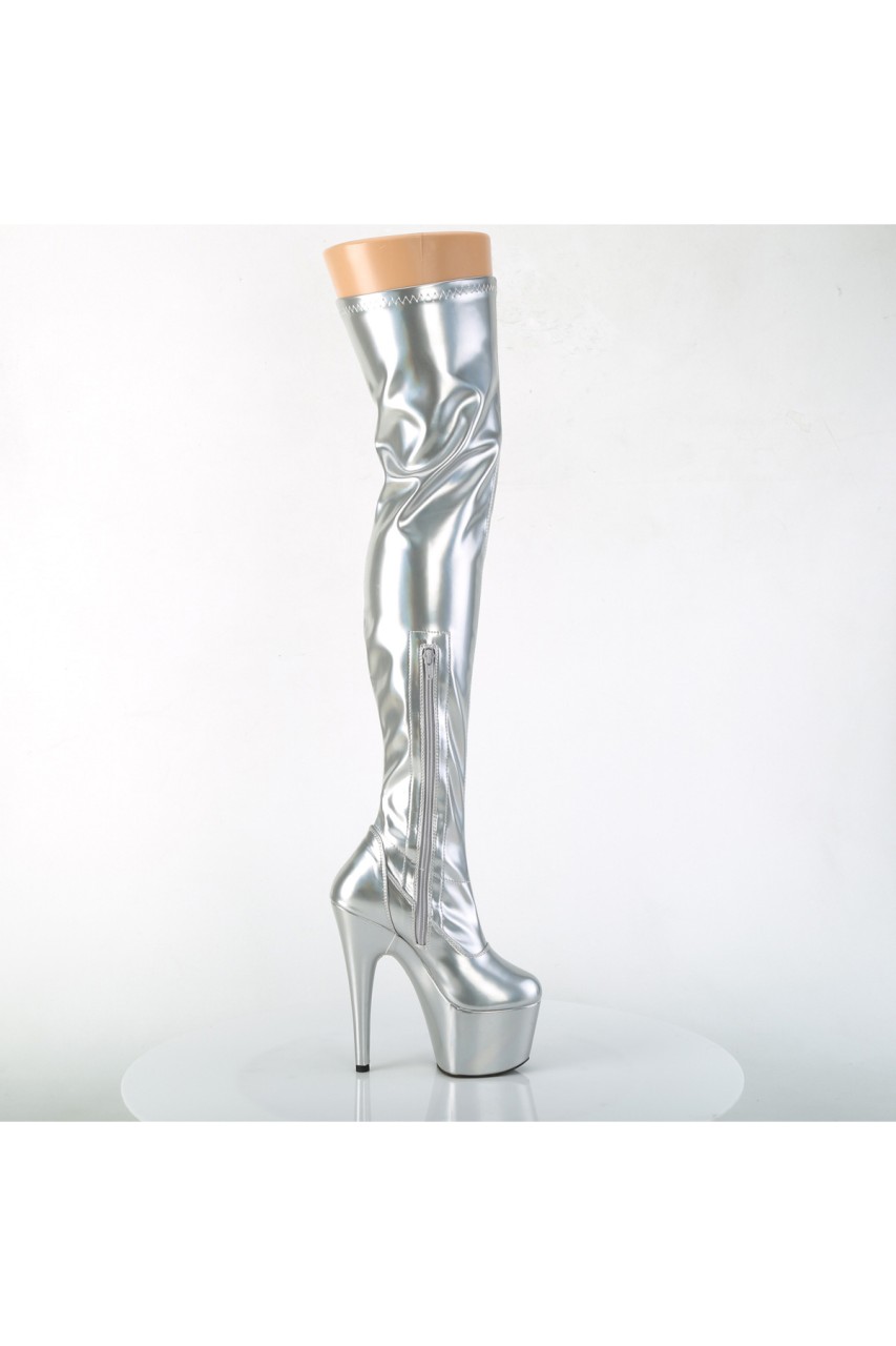7″” (178mm) Heel, 2 3/4″” (70mm) Platform Stretch Thigh High Boot, 1/2 Length Inner Side Zip Closure