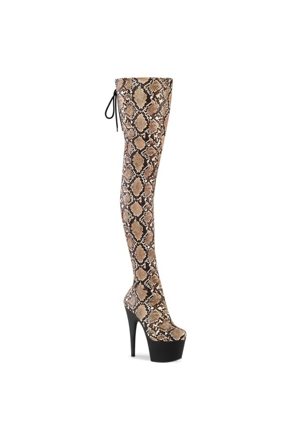 7″” (178mm) Heel, 2 3/4″” (700mm) Stretch Snake Print Pull-On Thigh Boot w/Rear Tie Fastening