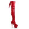 7″” (17.8cm) Stiletto Heel, 2 3/4″” (7cm) Platform Back Lace-Up Stretch Thigh High Boot, Full Side Zip Closure