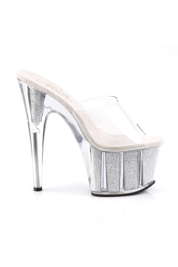 7″” (17.8cm) Stiletto Heel, 2 3/4″” (7cm) Platform Slide, Glitter-filled Platform