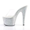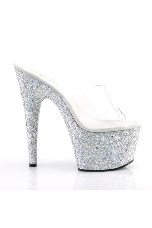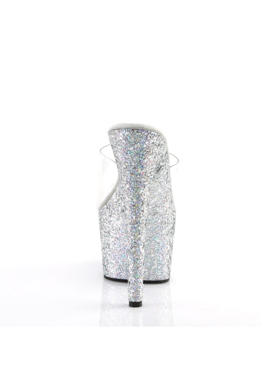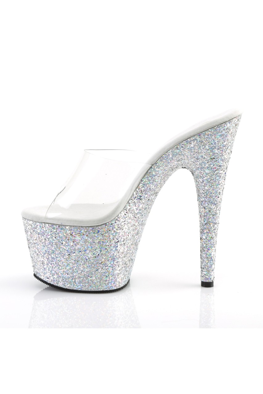 7″” (17.8cm) Stiletto Heel, 2 3/4″” (7cm) Platform Slide Featuring Holographic Glitter Covering Entire Platform