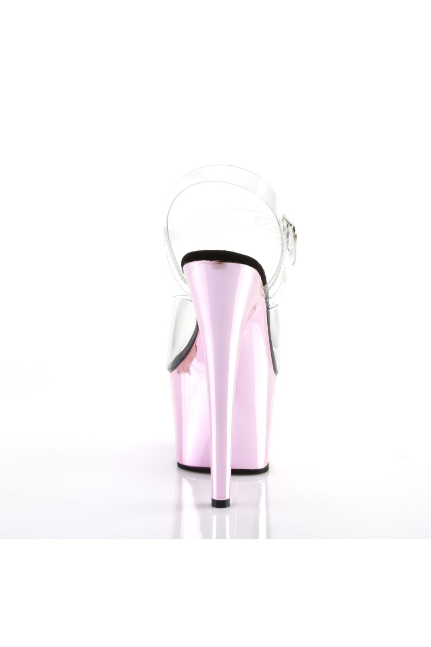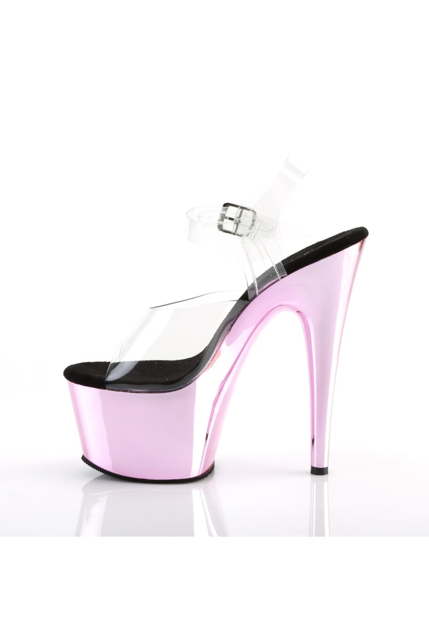 7″” (178mm) Heel, 2 3/4″” (70mm) Platform Ankle Strap Sandal w/ Chrome Plated Bottom