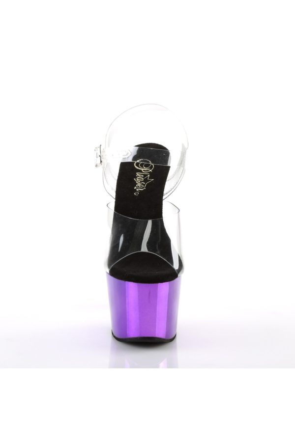 7″” (178mm) Heel, 2 3/4″” (70mm) Platform Ankle Strap Sandal w/ Chrome Plated Bottom