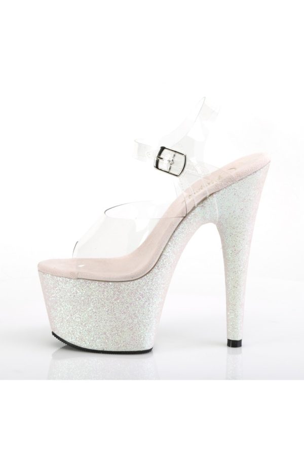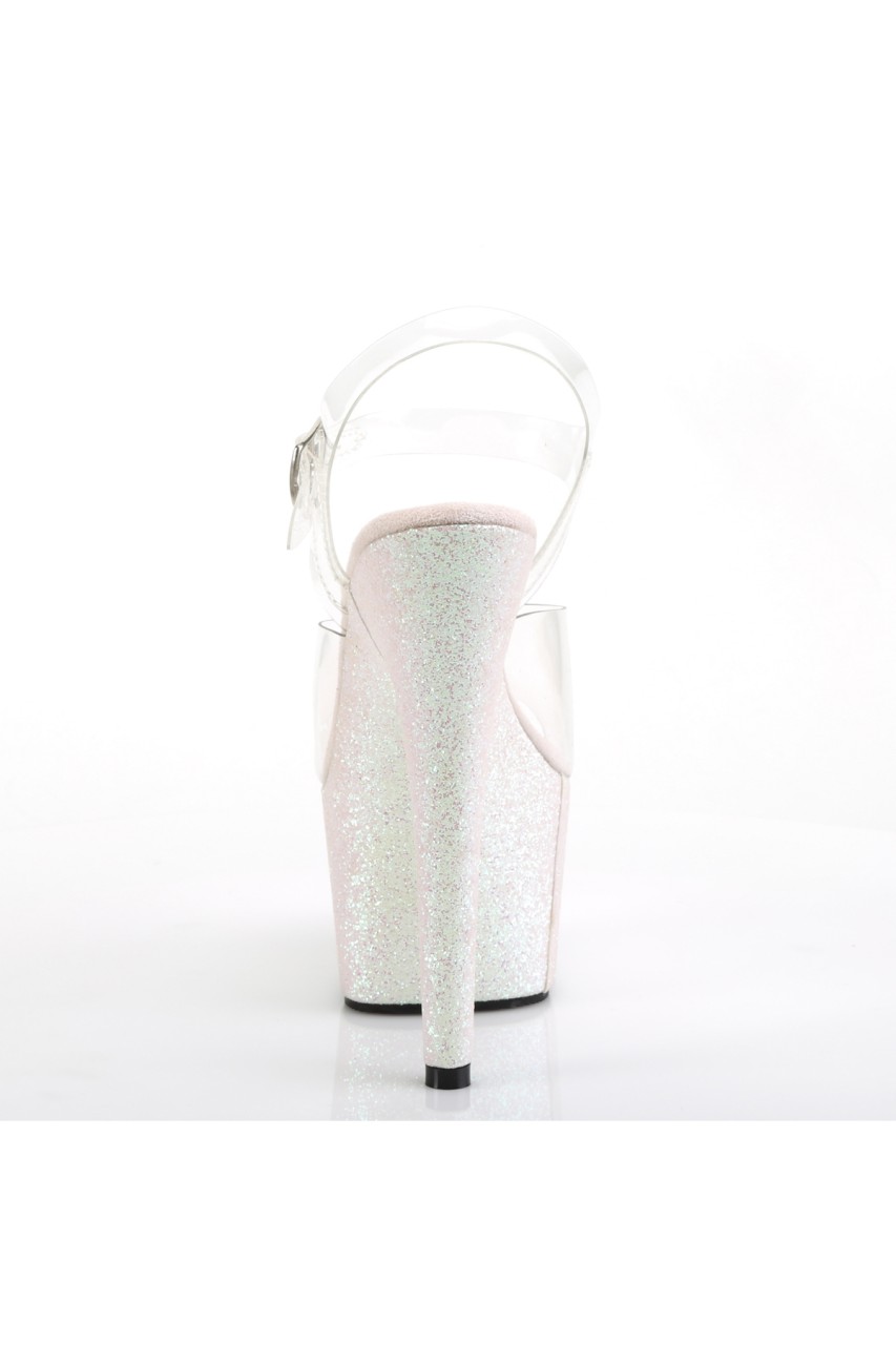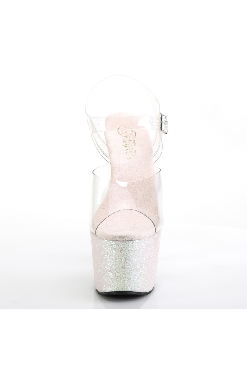 7″” (178mm) Heel, 2 3/4″” (70mm) Platform Ankle Strap Sandal Featuring Holographic Mini Glitter Wrapped Platform Bottom