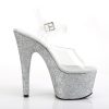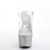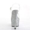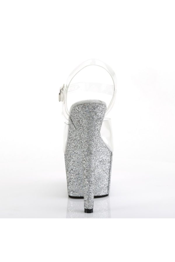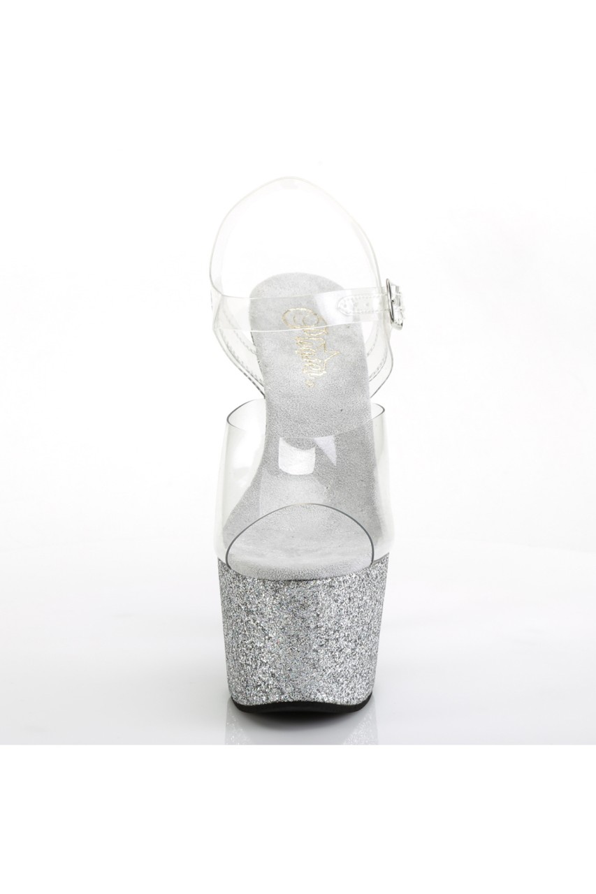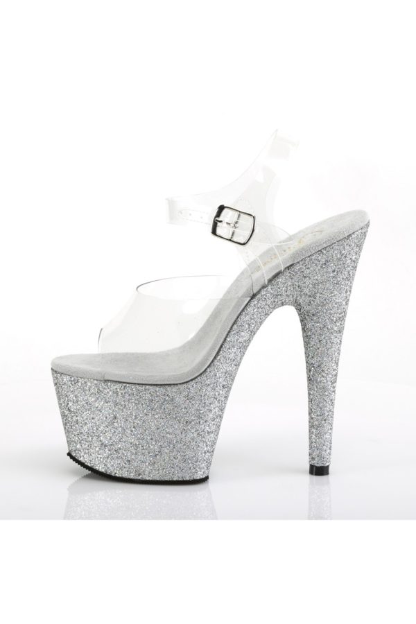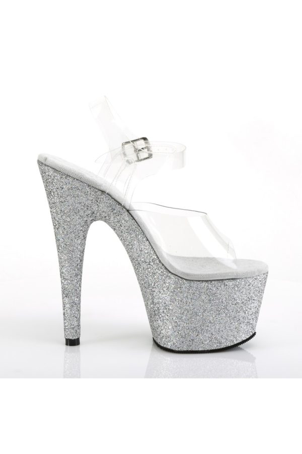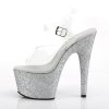 7″” (178mm) Heel, 2 3/4″” (70mm) Platform Ankle Strap Sandal Featuring Holographic Mini Glitter Wrapped Platform Bottom