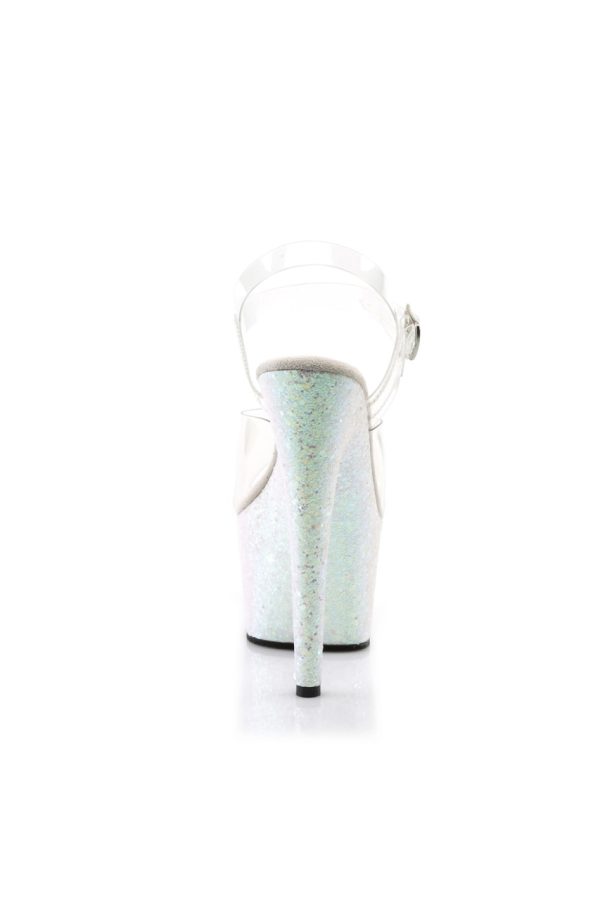 7″” (178mm) Heel, 2 3/4″” (70mm) Platform Ankle Strap Sandal Featuring Holographic Glitters on the Entire Platform Bottom