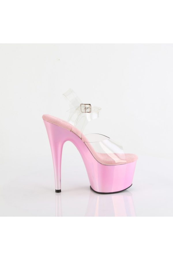 7″” (178mm) Heel, 2 3/4″” (70mm) Platform Ankle Strap Sandal Featuring Holographic Liquid Effect Platform Bottom