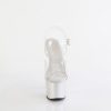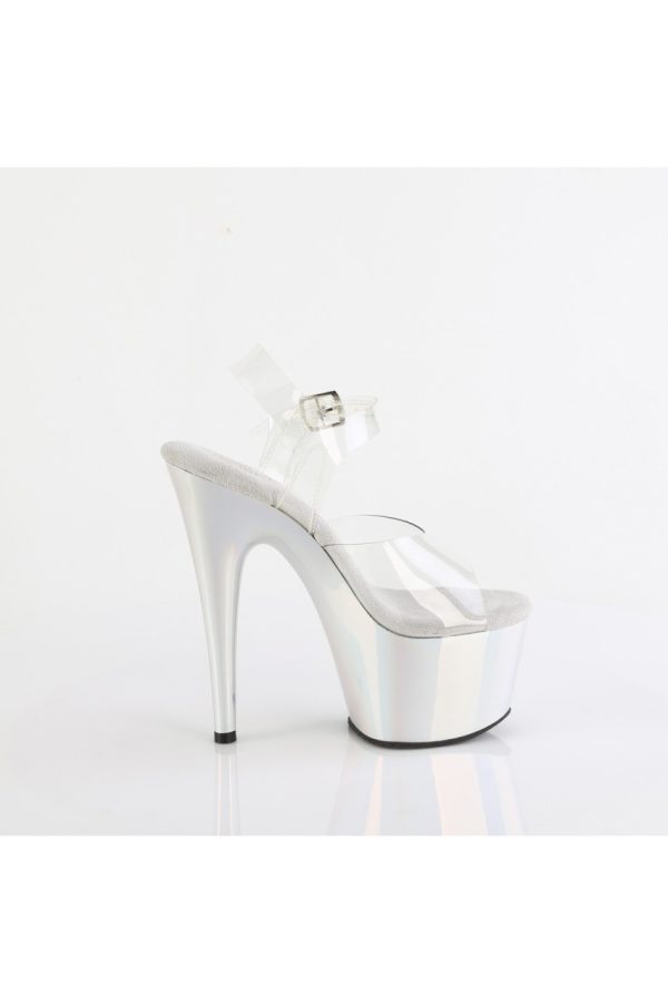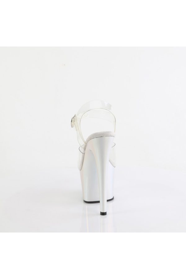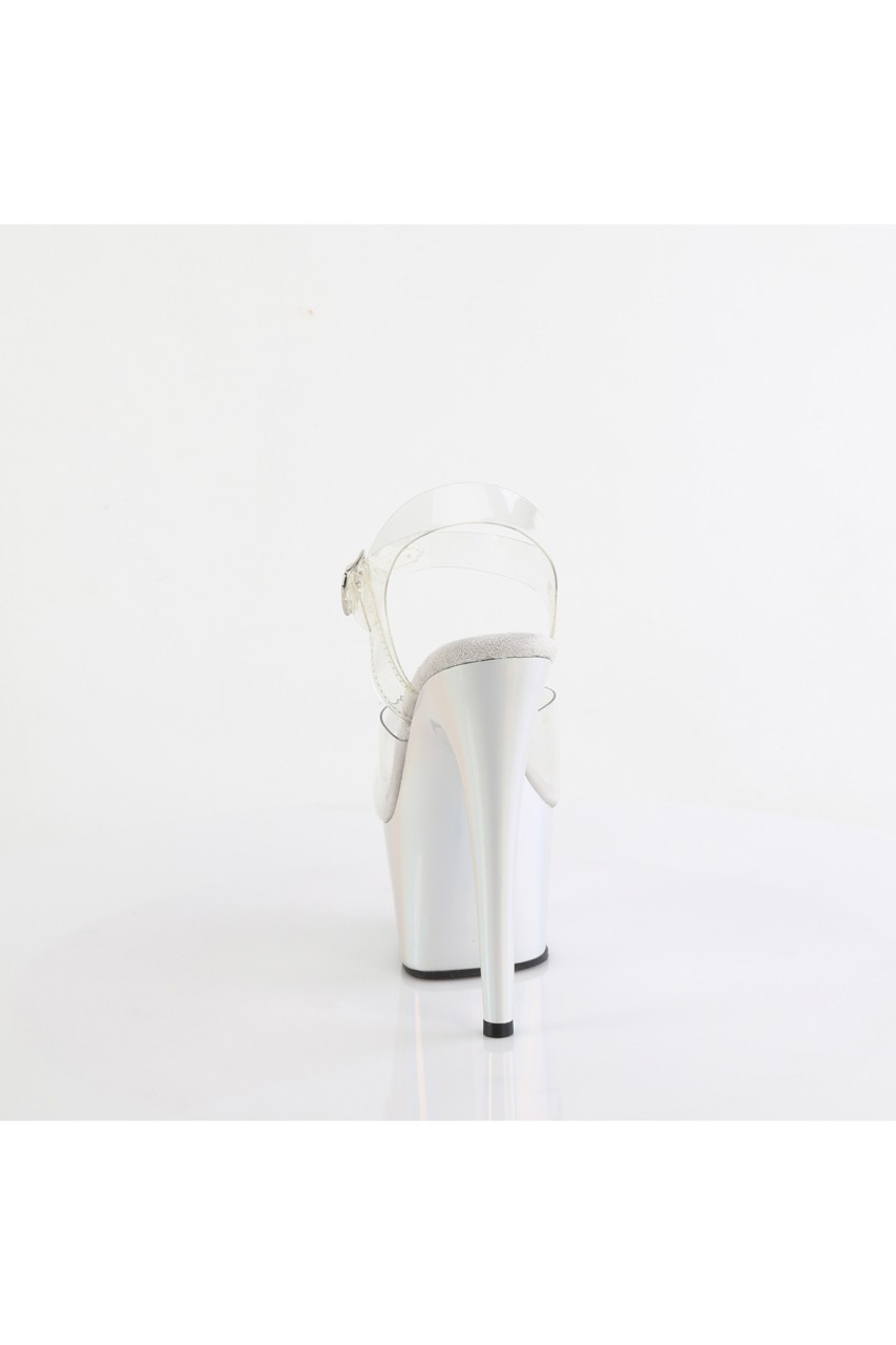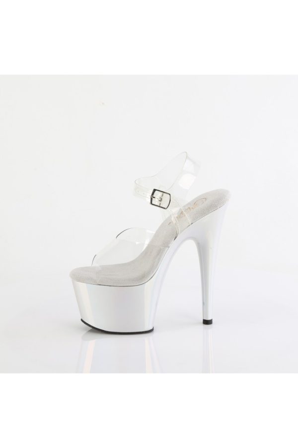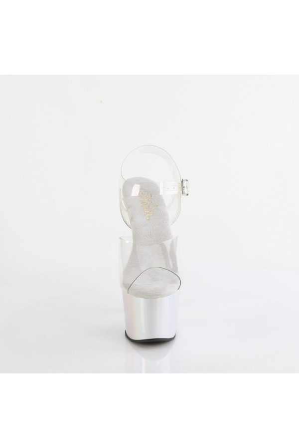 7″” (178mm) Heel, 2 3/4″” (70mm) Platform Ankle Strap Sandal Featuring Holographic Liquid Effect Platform Bottom