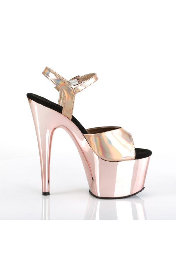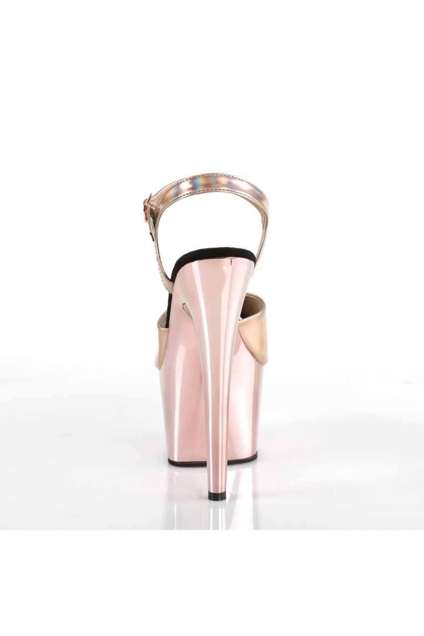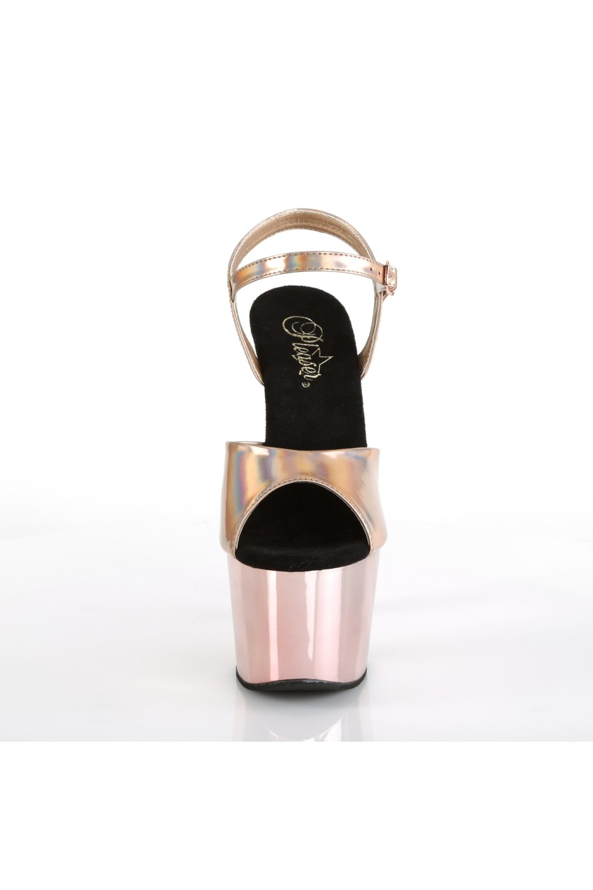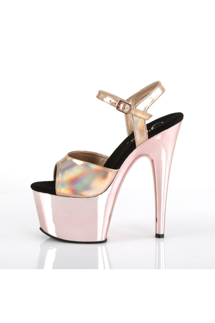 7″” (178mm) Heel, 2 3/4″” (70mm) Platform Ankle Strap Sandal W/ Chrome Plated Platform Bottom