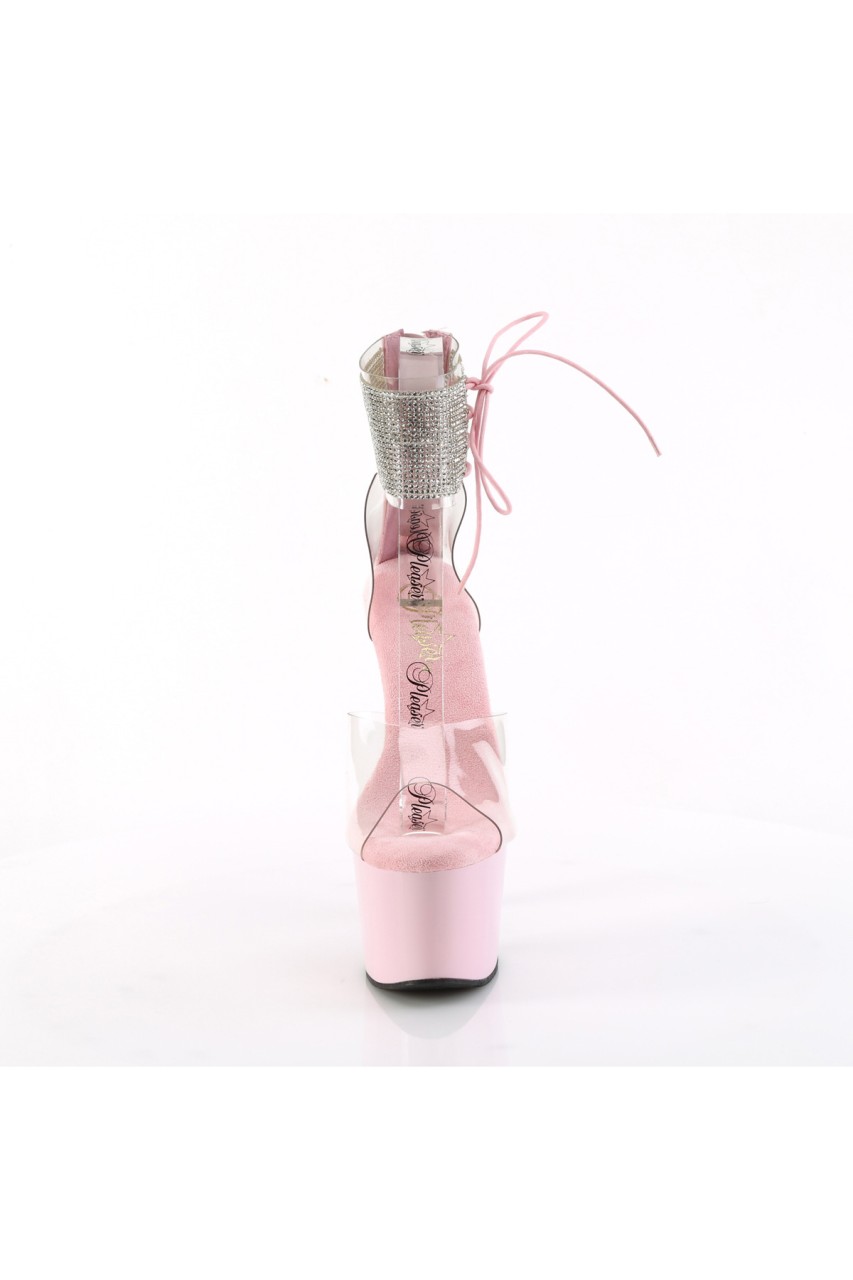 7″” (178mm) Heel, 2 3/4″” (70mm) Platform Close Back Rhinestone Embellished Ankle Cuff Sandal w/Side Lacing, Back Zip Closure
