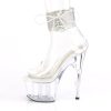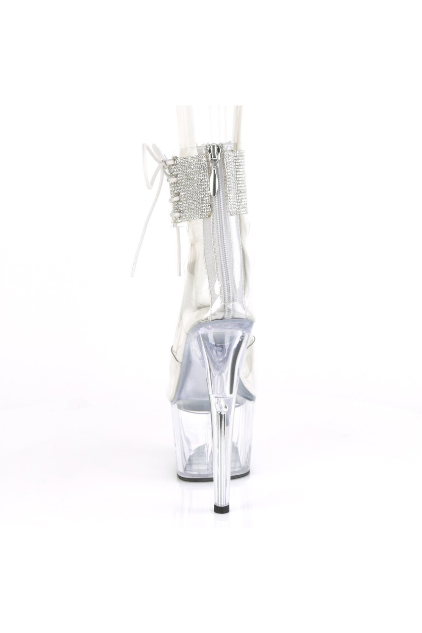 7″” (178mm) Heel, 2 3/4″” (70mm) Platform Close Back Rhinestone Embellished Ankle Cuff Sandal w/Side Lacing, Back Zip Closure