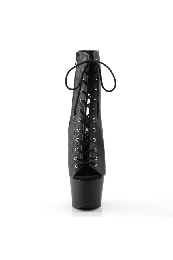 7″” (17.8cm) Stiletto Heel, 2 3/4″” (7cm) Platform Open Toe/Stiletto Heel Front Lace-Up Ankle Boot, Side Zip Closure