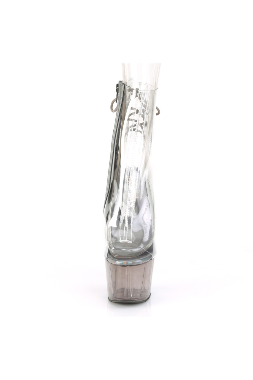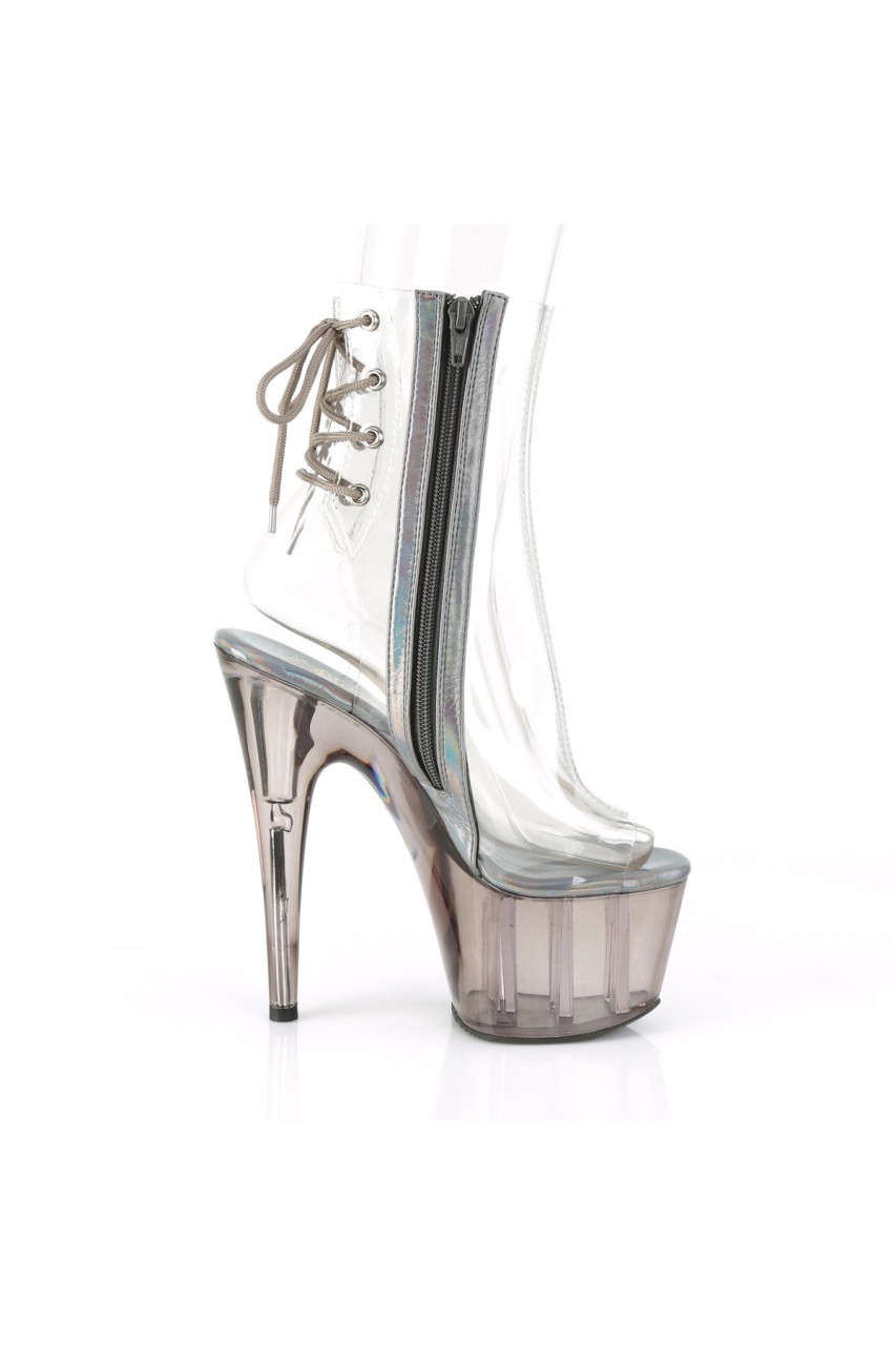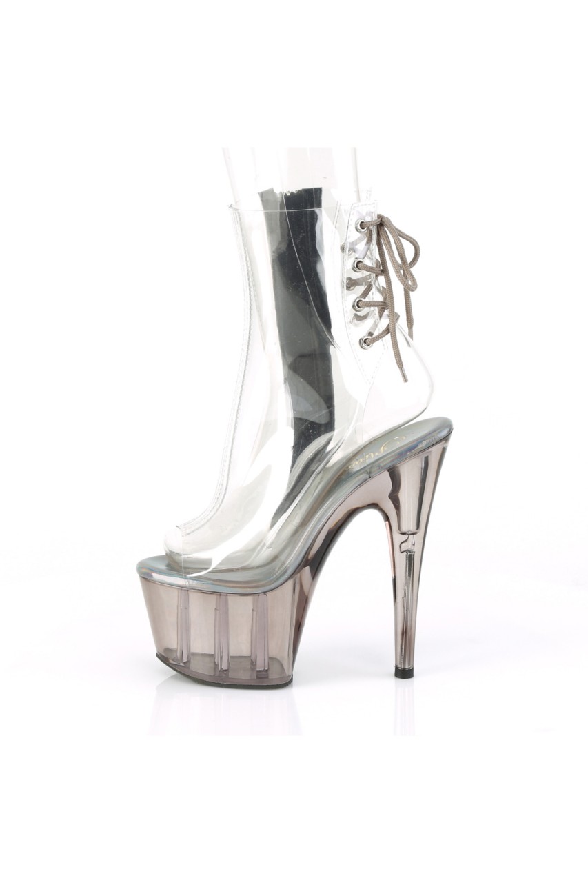 7″” (178mm) Heel, 2 3/4″” (70mm) Tinted Platform Open Toe/Heel Lace-Up Back Ankle Boot, Inner Side Zip Closure