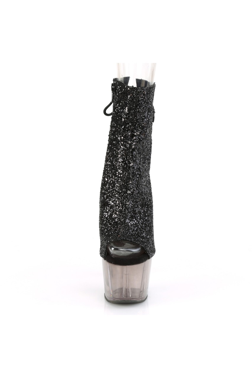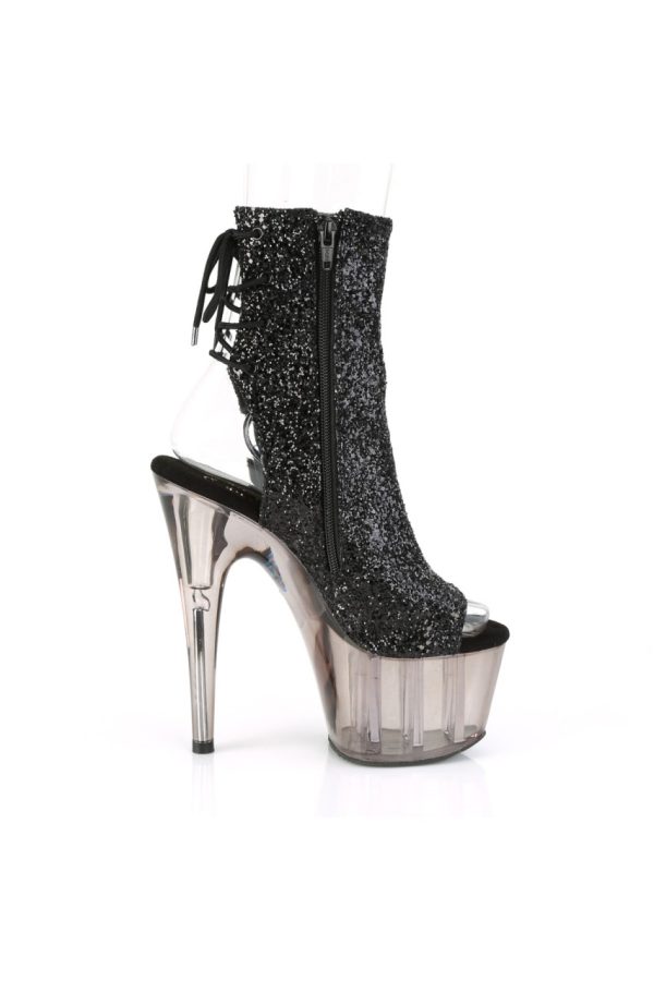7″” (178mm) Heel, 2 3/4″” (70mm) Tinted Platform Open Toe/Heel Lace-Up Back Ankle Boot, Inner Side Zip Closure