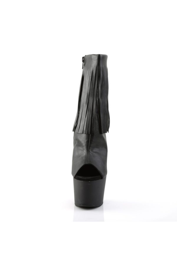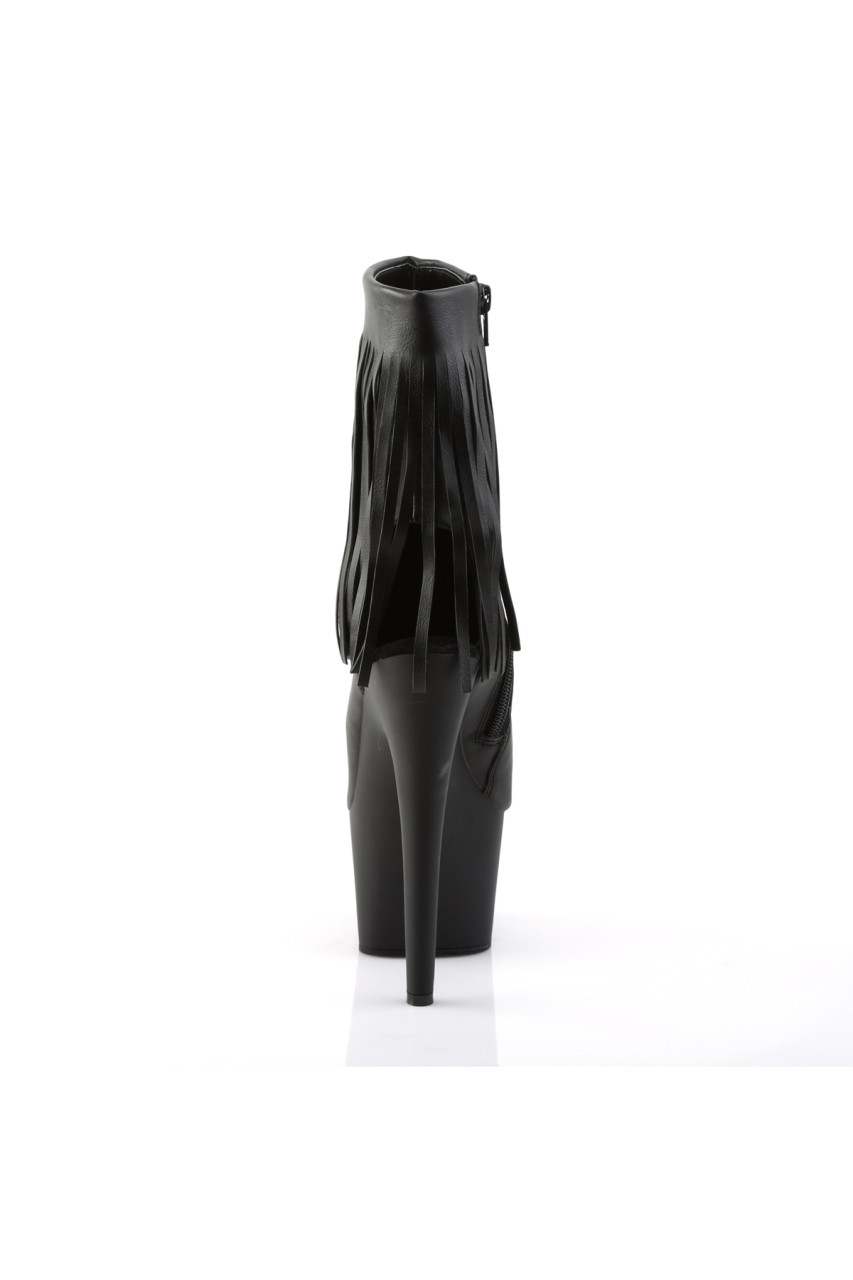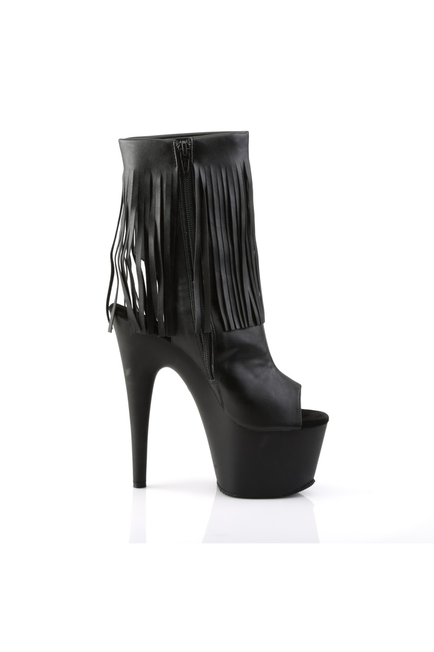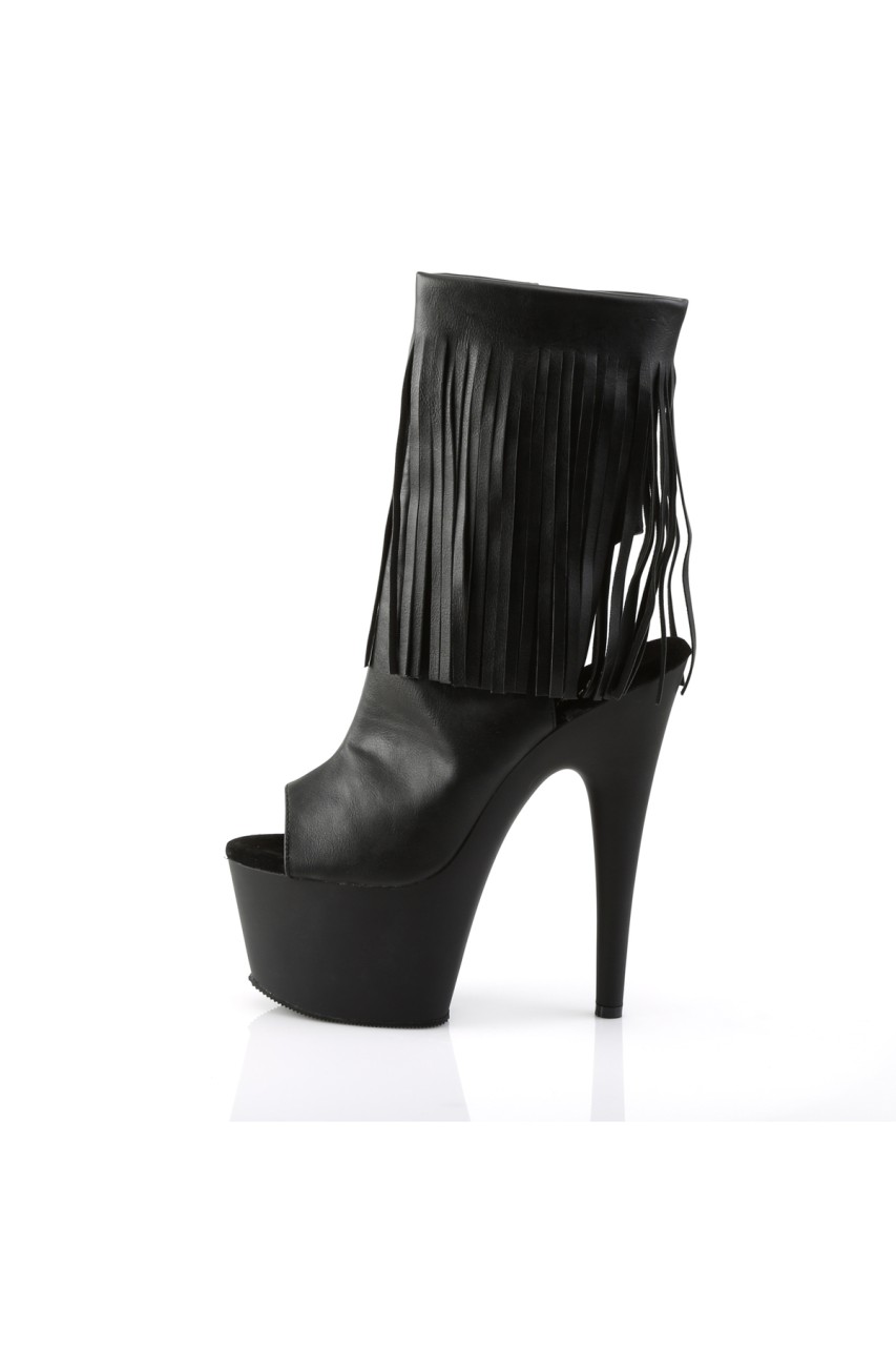 7″” (17.8cm) Stiletto Heel, 2 3/4″” (7cm) Platform Open Toe/Stiletto Heel Fringe Ankle Boot, Inner Side Zip Closure