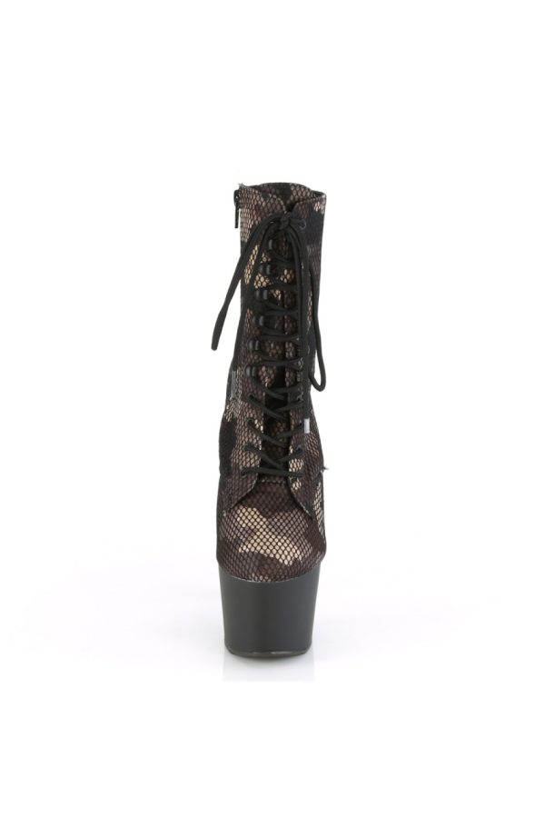 7″” (178mm) Heel, 2 3/4″” (70mm) Platform Lace-Up Front Mesh Overlay Ankle Boot, Inner Side Zip Closure