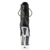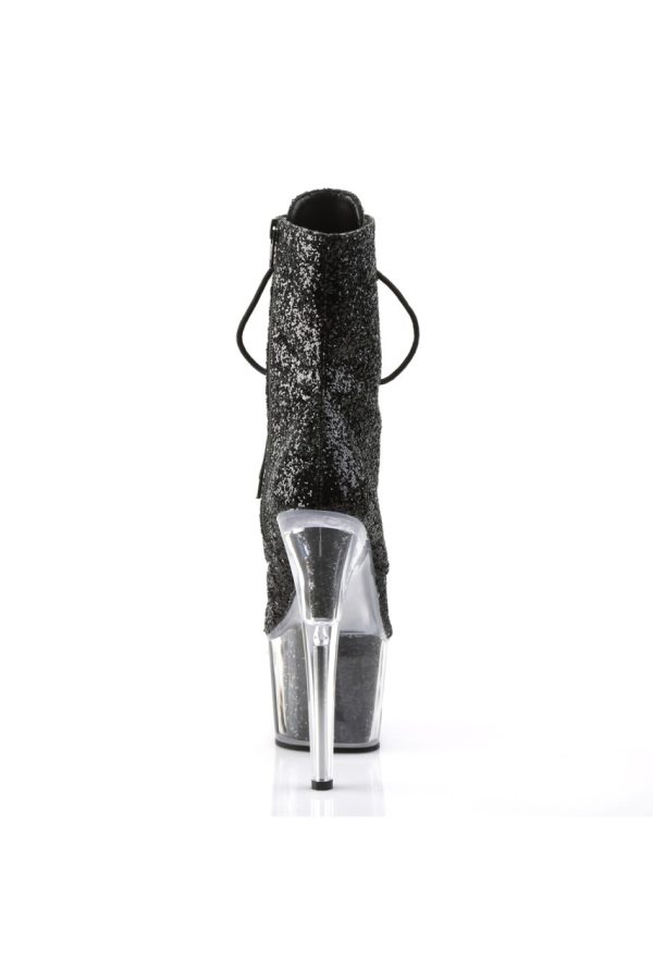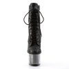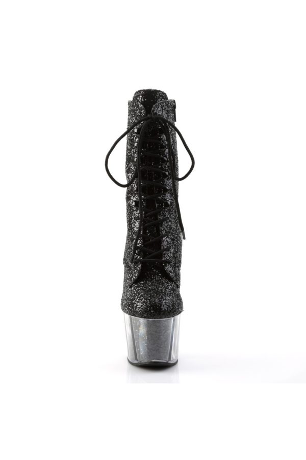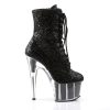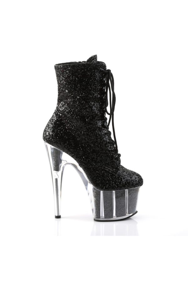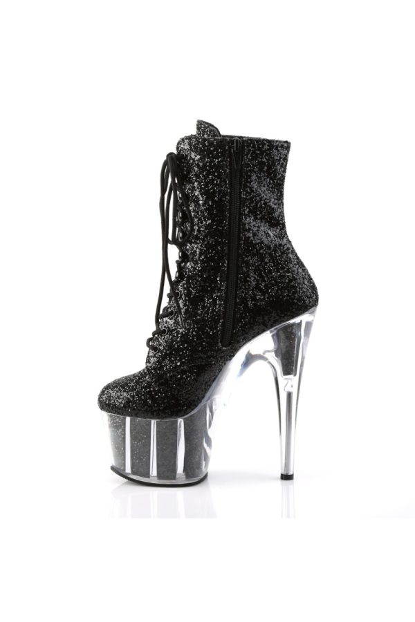 7″” (17.8cm) Stiletto Heel, 2 3/4″” (7cm) Glitter-filled Platform Front Lace-Up Ankle Boot, Inner Side Zip Closure