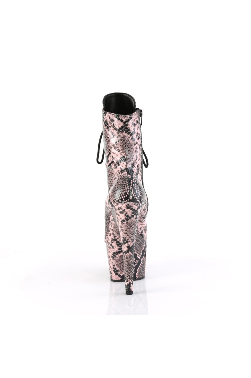 7″” (178mm) Heel, 2 3/4″” (70mm) Wrapped Platform Bottom Lace-Up Front Mid Calf Boot, Inner Side Zip Closure