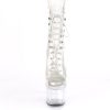 7″” (178mm) Heel, 2 3/4″” (70mm) Platform Peep Toe Lace-Up Front Ankle Boot, Inner Side Zip Closure