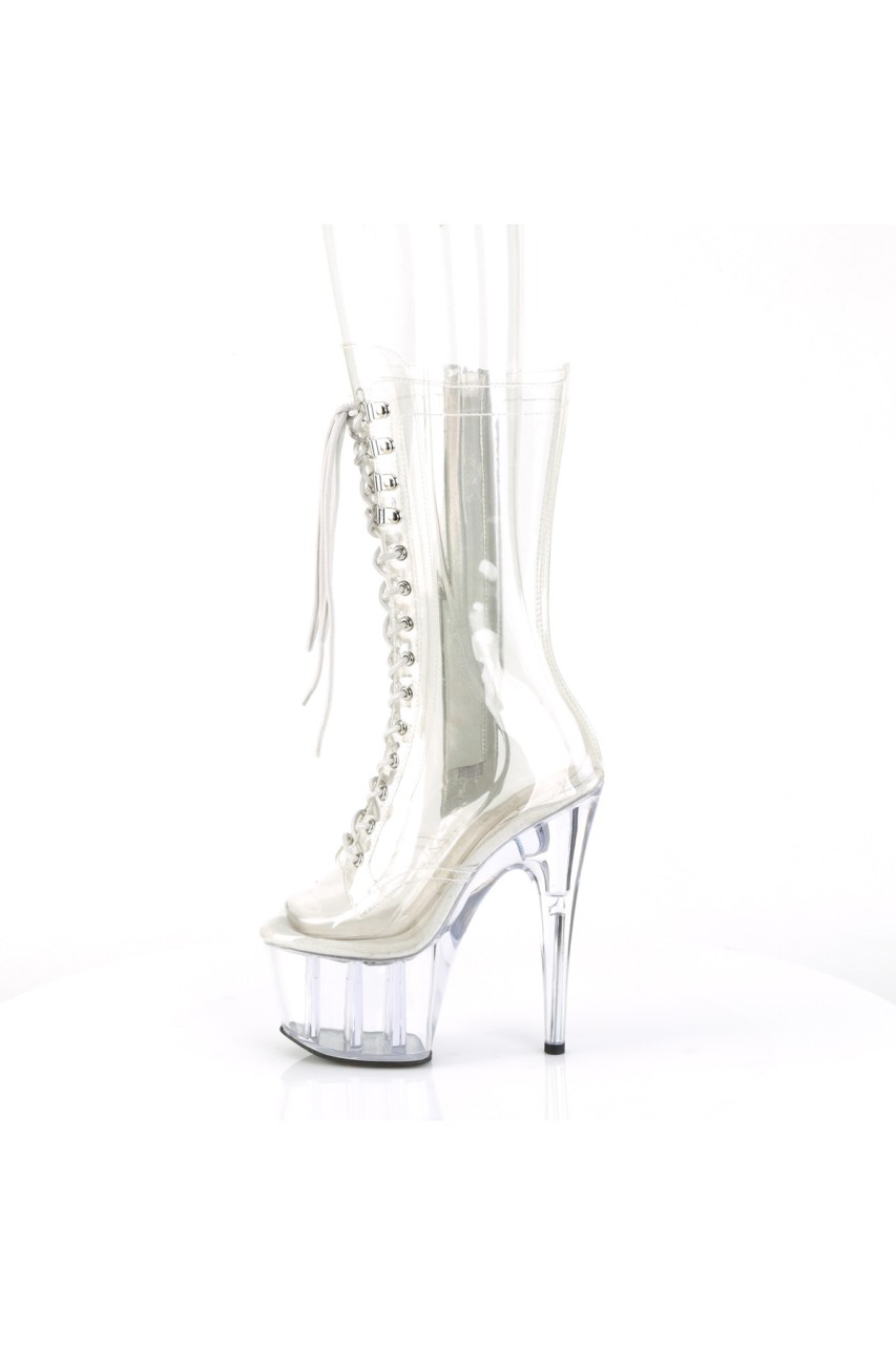 7″” (178mm) Heel. 2 3/4″” (70mm) Platform Lace-Up Front Mid Calf Boot, Inner Side Zip Closure