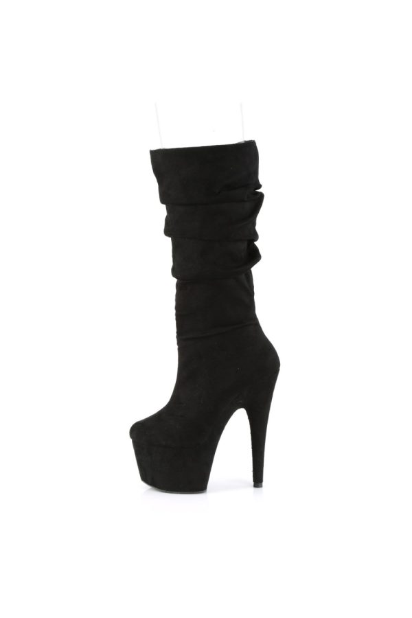 7″” (178mm) Heel, 2 3/4″” (70mm) Platform Slouch Mid-Calf Boot Featuring Fully Wrapped Platform Bottom, Inner Side Zip Closure