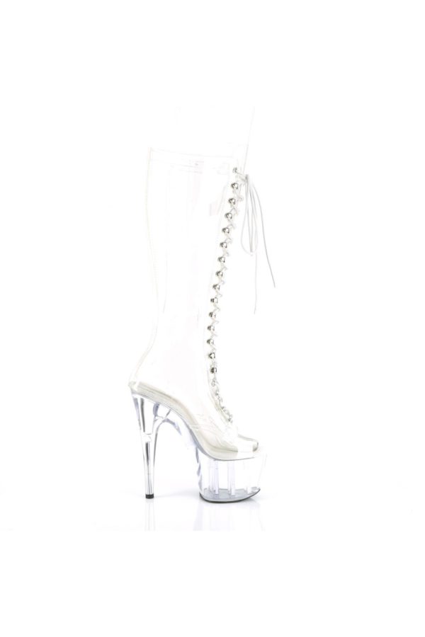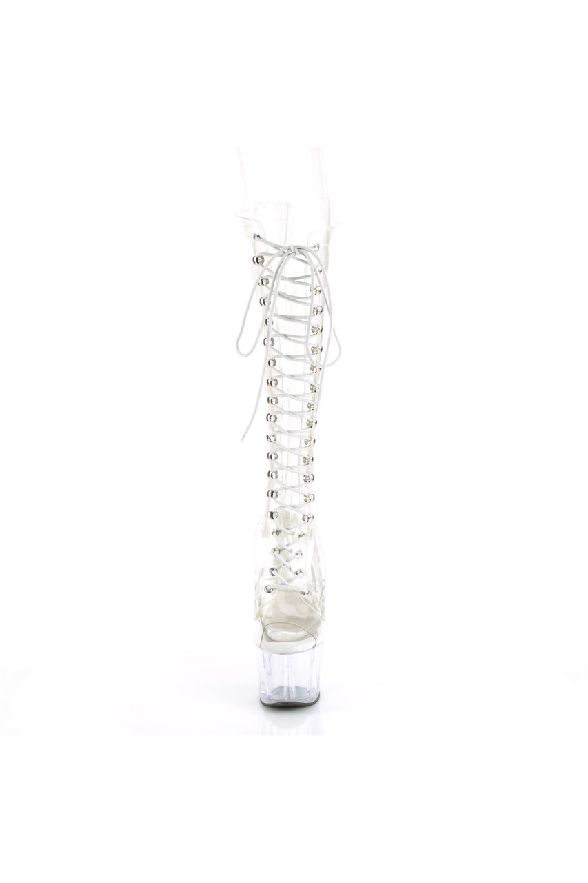 7″” (178mm) Heel, 2 3/4″” (70mm) Platform Peep Toe Lace-Up Front Knee Boot