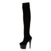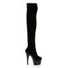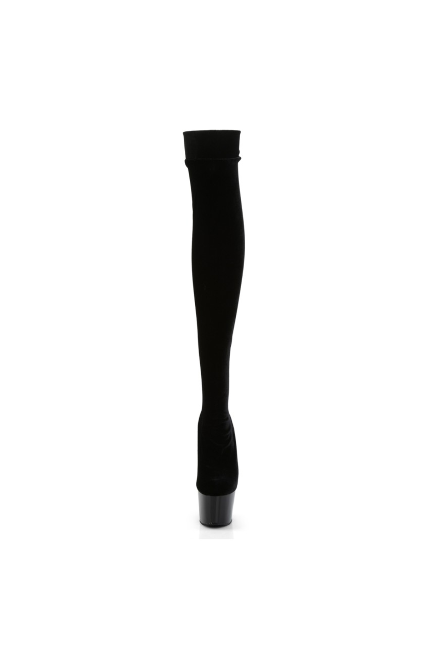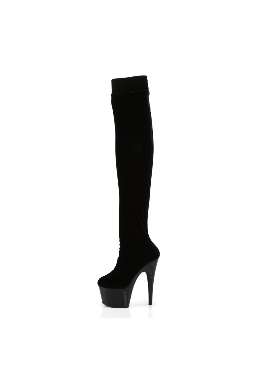 7″” (17.8cm) Stiletto Heel, 2 3/4″” (7cm) Platform Plain Stretch Platform Velvet Thigh Boot, No Zip Closure