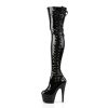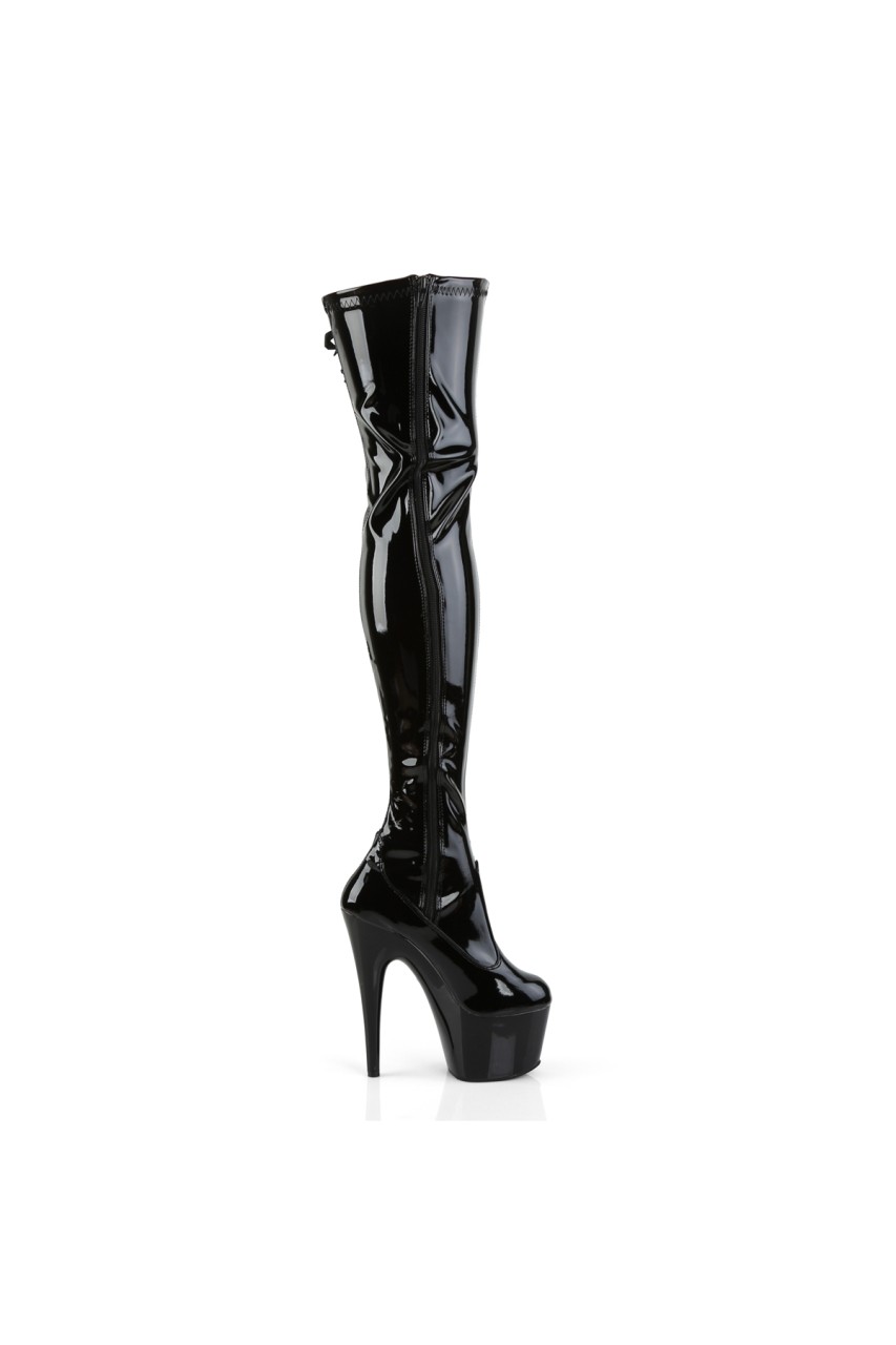 7″” (17.8cm) Stiletto Heel, 2 3/4″” (7cm) Platform Lace-Up Side Stretch Thigh High Boot with Ribbon Lace, Full Side Zip Closure