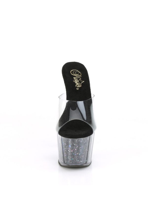 7″” (178mm) Heel, 2 3/4″” (70mm) Platform Slide w/ Confetti Glitter Inserts in the Platform Bottom