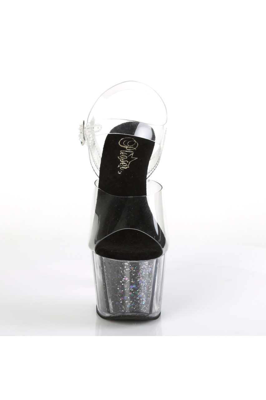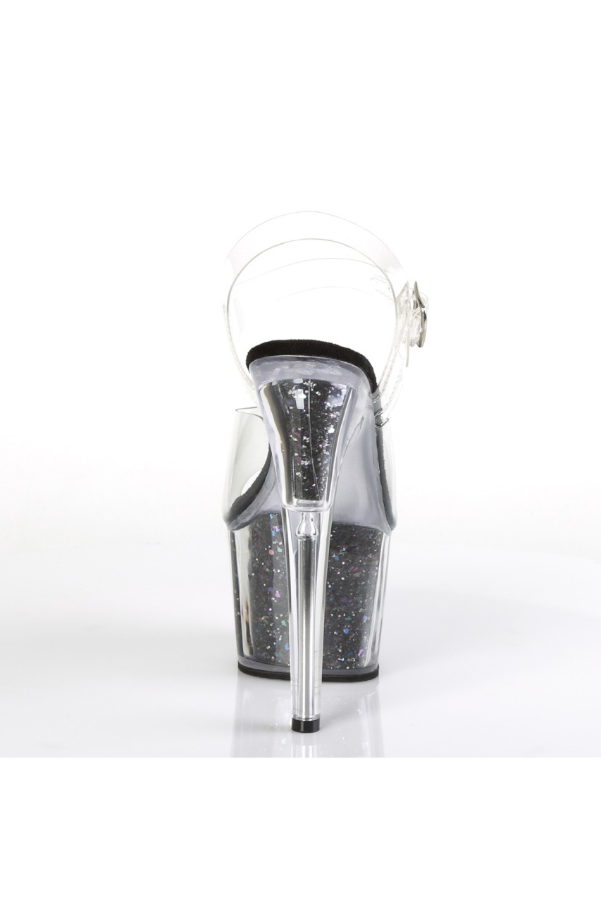 7″” (178mm) Heel, 2 3/4″” (70mm) Platform Ankle Strap Sandal w/ Confetti Glitter Inserts in the Platform Bottom