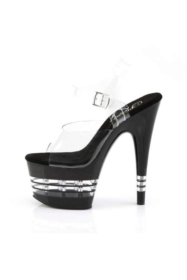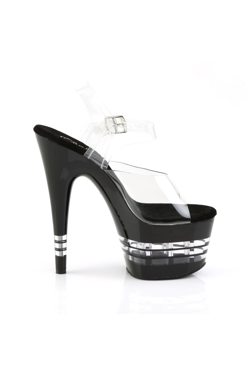 7″” (17.8cm) Stiletto Heel, 2 3/4″” (7cm) Platform Ankle Strap Sandal Featuring Clear Stripe on Platform