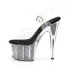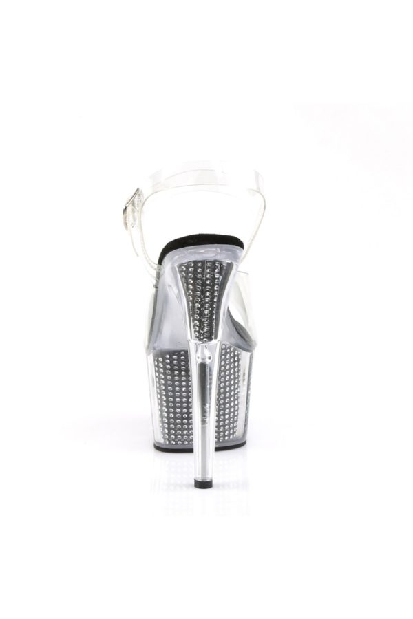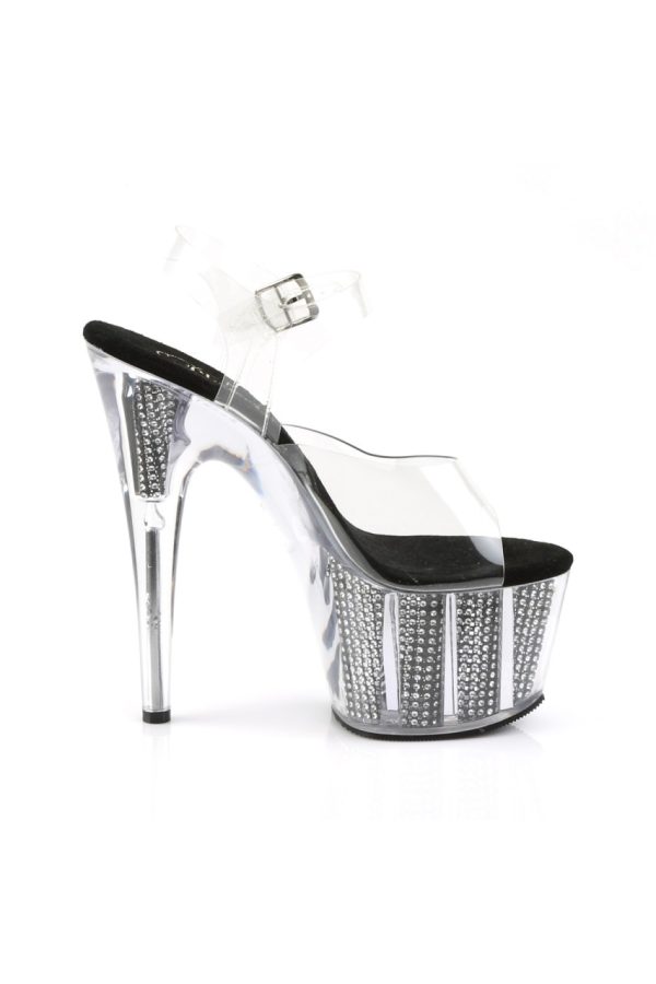 7″” (17.8cm) Stiletto Heel, 2 3/4″” (7cm) Platform Ankle Strap Sandal Featuring Simulated Rhinestone Filled Platform