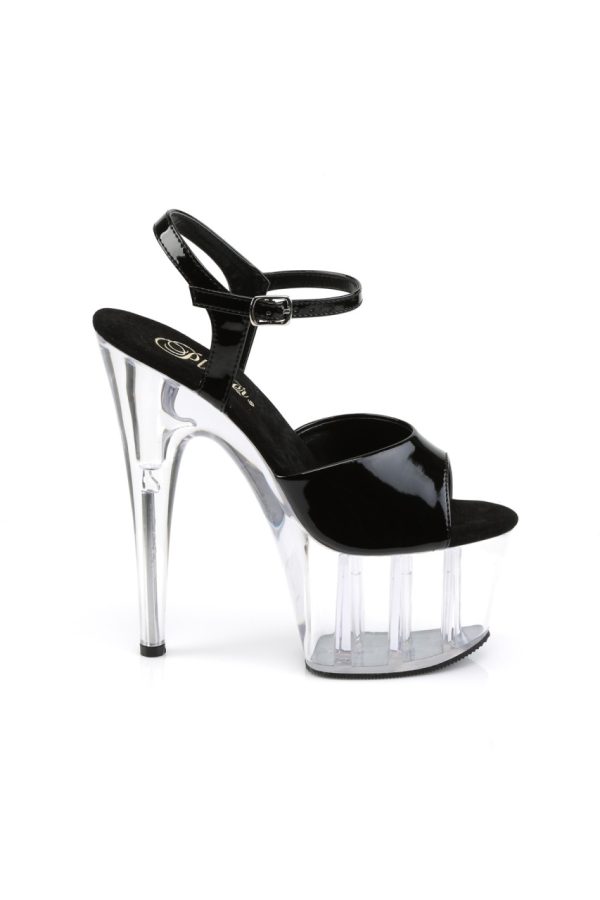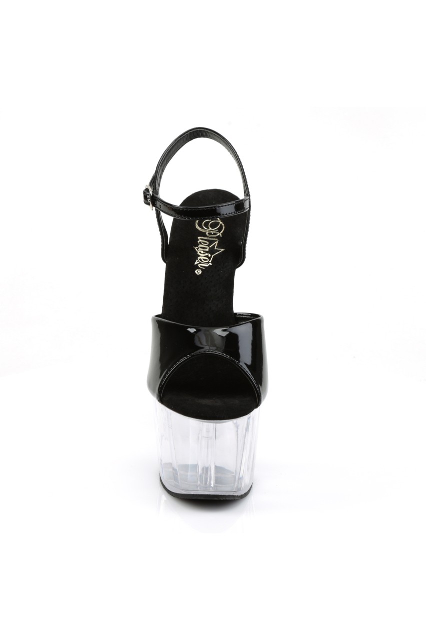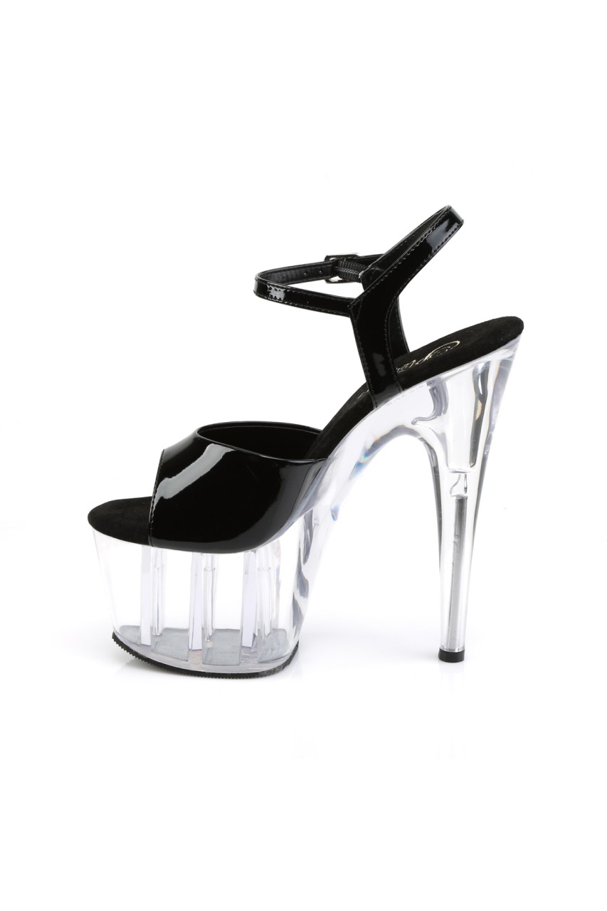 7″” (17.8cm) Stiletto Heel, 2 3/4″” (7cm) Platform Ankle Strap Sandal