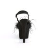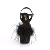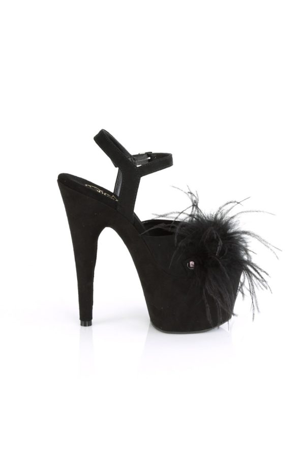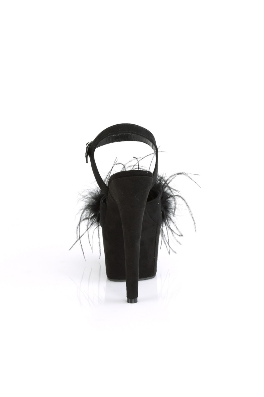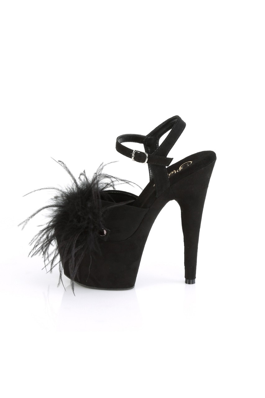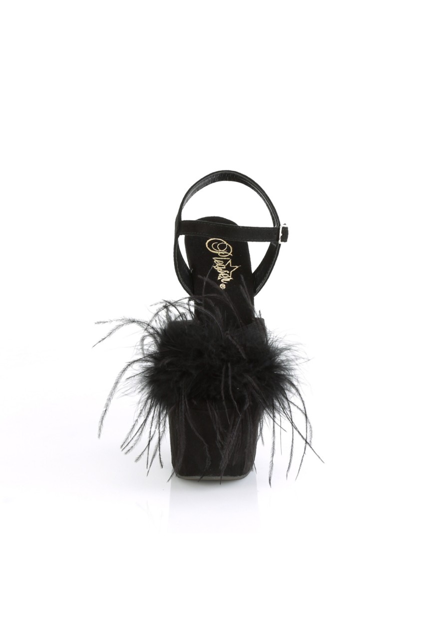 7″” (178mm) Heel, 2 3/4″” (70mm) Platform Ankle Strap Sandal Featuring Snap-On, Removable Marabou Feather on Vamp
