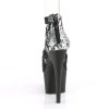 7″” (178mm) Heel, 2 3/4″” (70mm) Platform Close Back Sandal w/ Multiple Criss Cross Elastic Straps, Back Zip Closure