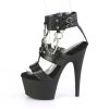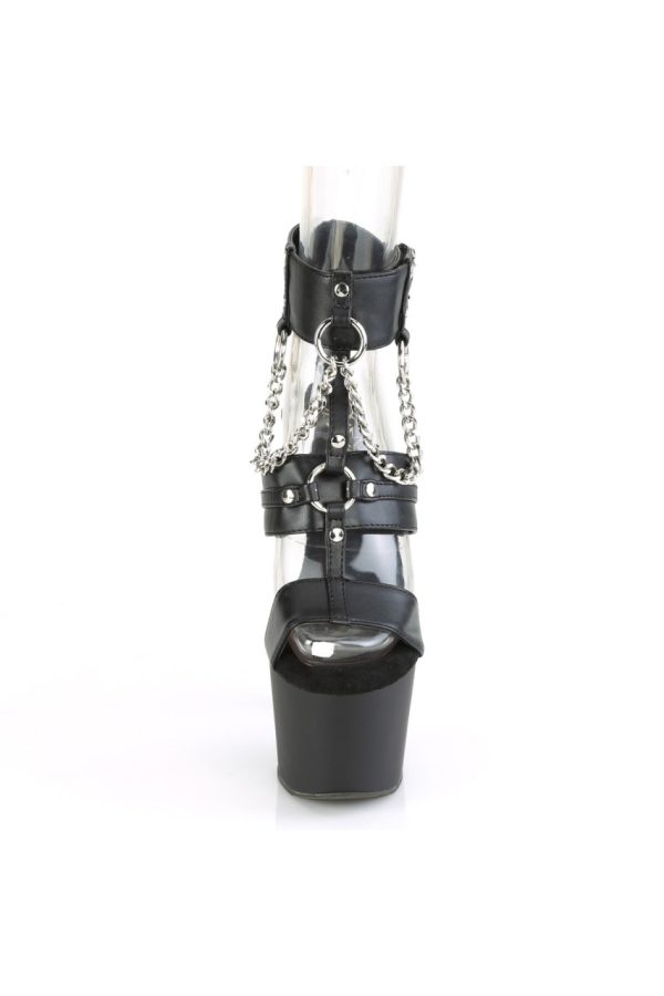 7″” (178mm) Heel, 2 3/4″” (70mm) Platform Strappy T-Strap Sandal w/Metal Rings & Chains Detail