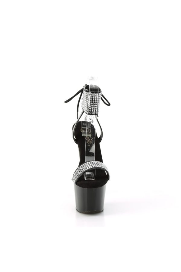 7″” (178mm) Heel, 2 3/4″” (70mm) Platform Lace-Up Back Sandal Featuring Rhinestones All Over Ankle Cuff & Toe Strap