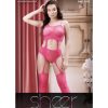 A plus halter neck bodystocking with intricate design. Item arrives packaged. Please note the thong is not included.