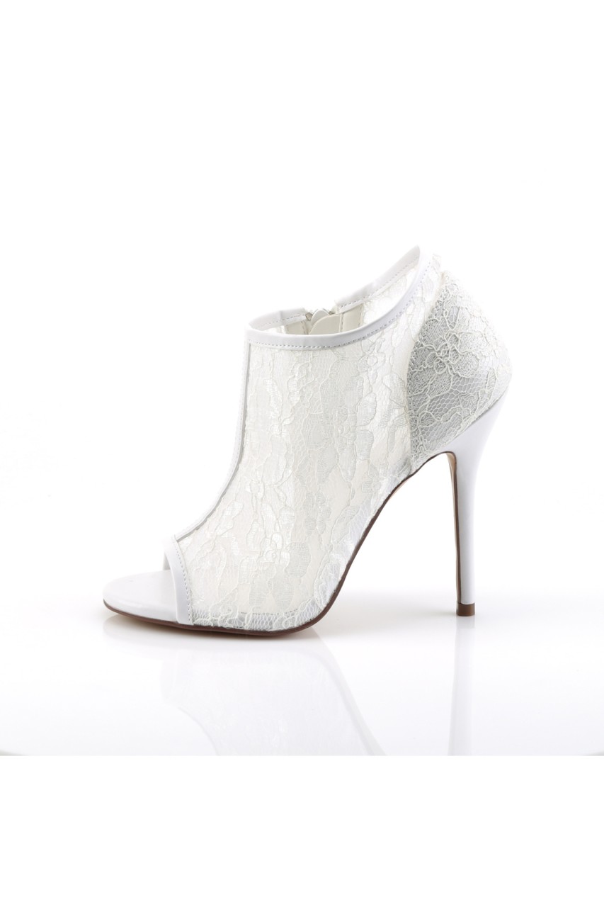 5″” (12.7cm) Heel, Open Toe Bootie W/ Lace Overlay, Inner Side Zip Closure Lace Mesh