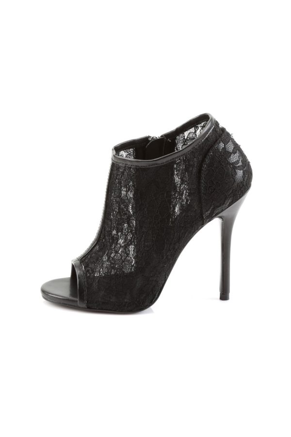 5″” (12.7cm) Heel, Open Toe Bootie W/ Lace Overlay, Inner Side Zip Closure Lace Mesh