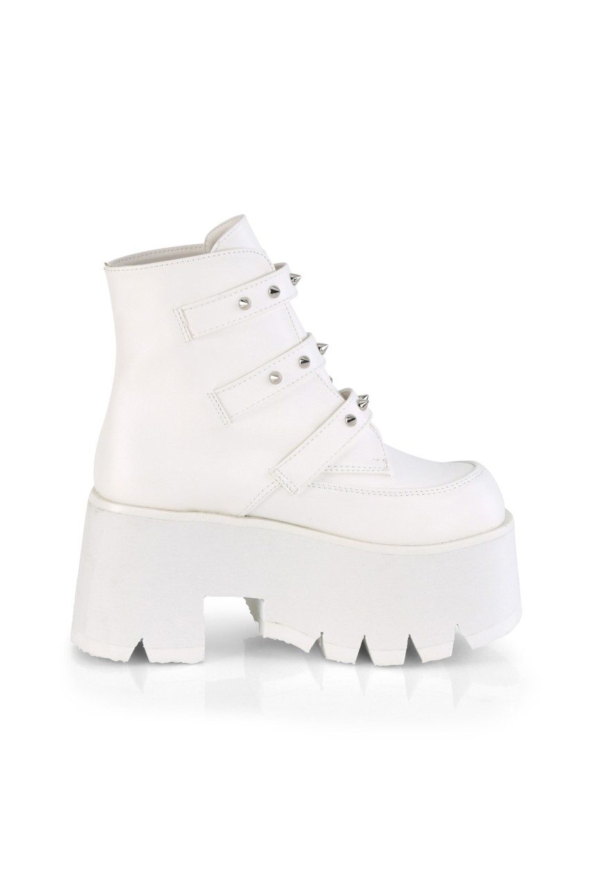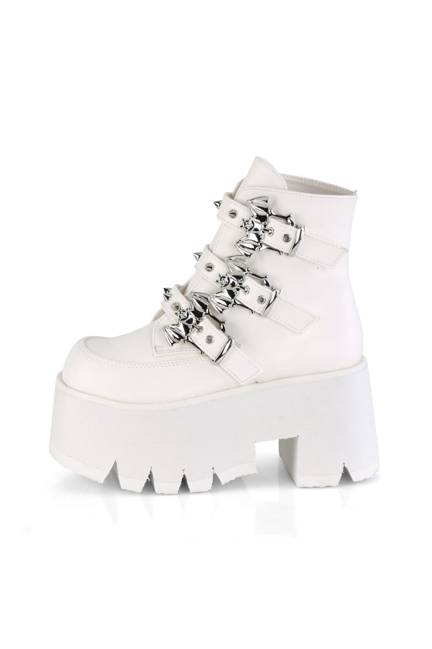 3 1/2″” (90mm) Chunky Heel 2 1/4″” (57mm) Cut Out Platform Ankle Boot Featuring 3 Studded Bat Buckle Straps