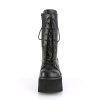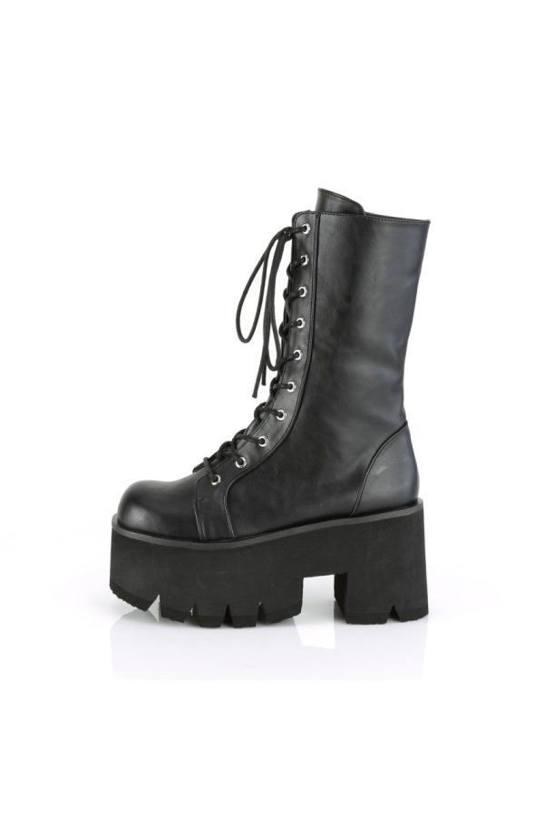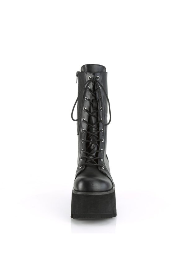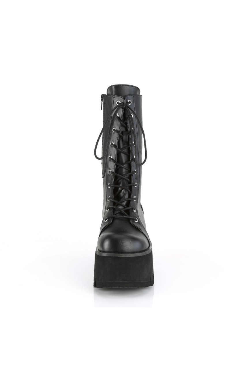 3 1/2″” (90mm) Chunky Heel, 2 1/4″” (57mm) Platform Lace-Up Mid-Calf Boot, Side Zip Closure