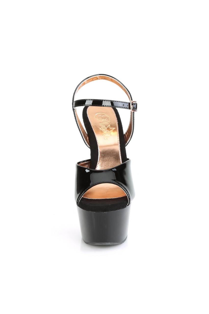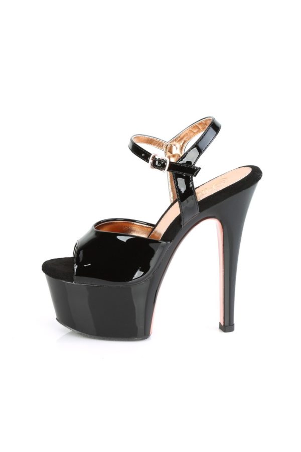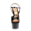 6″” (152mm) Heel, 2 1/4″” (57mm) Platform Ankle Strap Sandal Featuring Chrome Plated Platform Underside & Front of Heel